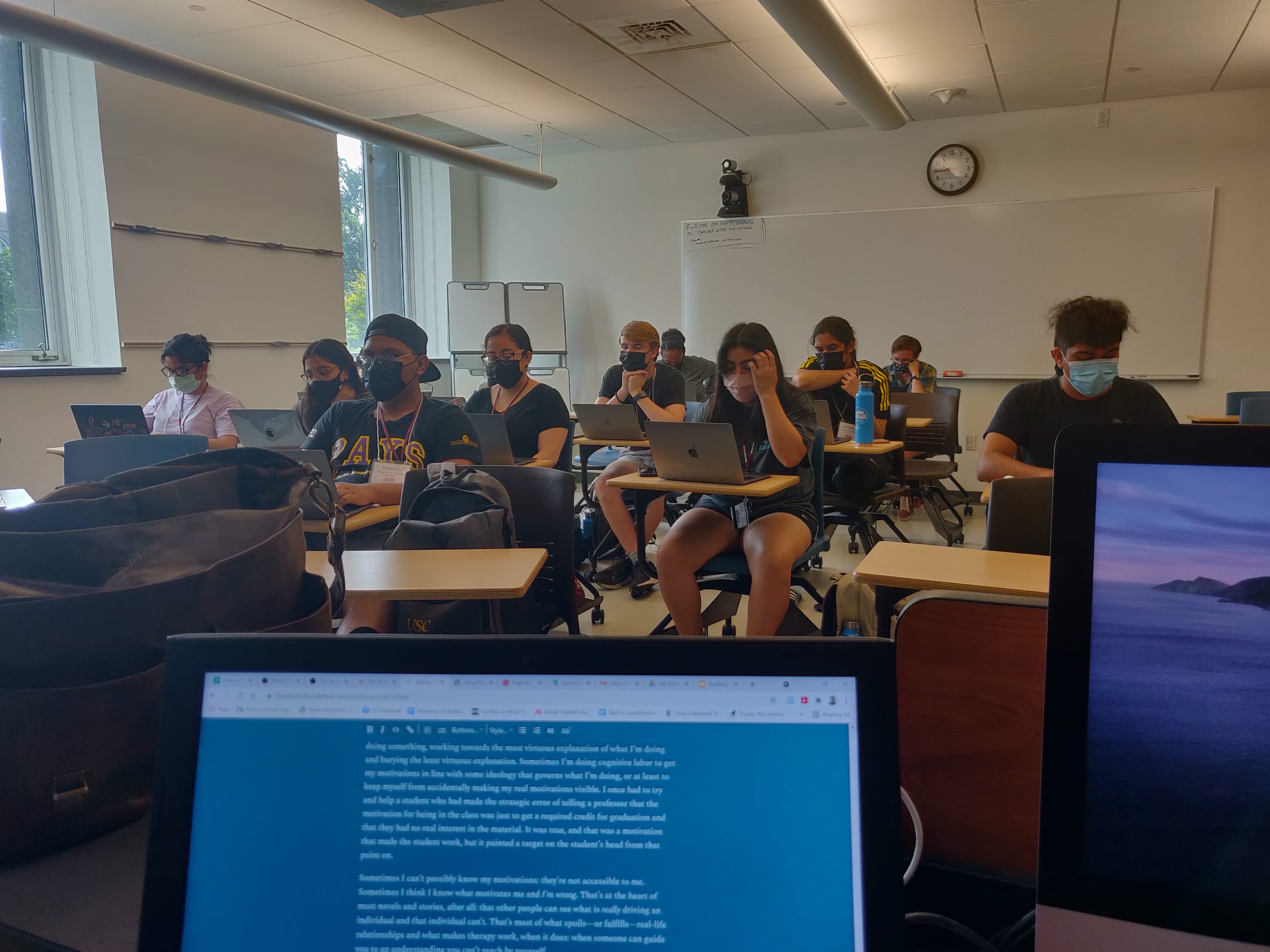 As I write this, I’m sitting in a classroom with 15 first-year Swarthmore students who are also writing about motivation, specifically about motivation to do STEM work in college. It’s part of a four-week program designed to introduce a small cohort of first-generation students to college before the semester begins. My job has been to work with writing, which I’ve mostly constructed as a conversation about social capital and the “hidden curriculum” that Rachel Gable talks about in her recent book. We’ve read Paul Tough’s The Years That Matter Most and John Warner’s Why They Can’t Write rather than doing a bunch of practice writing—only now at the end are we doing a bit of substantive writing, in as low-stakes a way as I can manage.